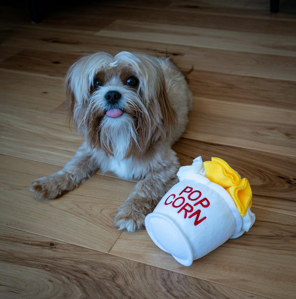 Can a snuffle toy get any cuter? The Popcorn quickly became one of Georgie’s favourite toys. He proudly carries it around everywhere — and thankfully, it has replaced our shoes and slippers!
