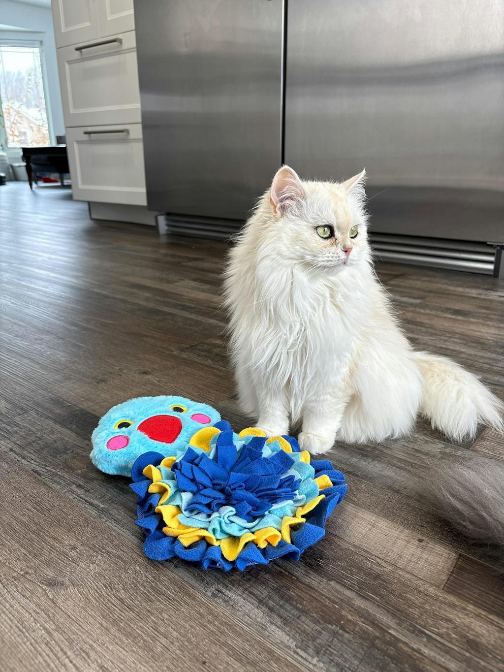 Our cats absolutely love the Flower Snuffle Mat. We hide treats or dry food inside and leave it out overnight or when we’re away, and it keeps them happily occupied.