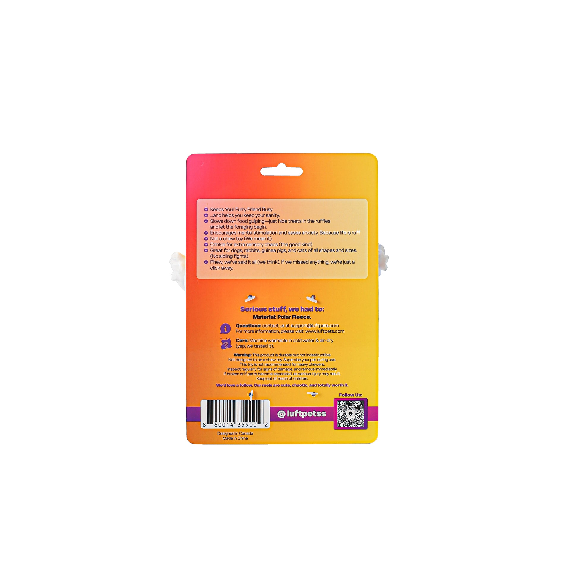 Luftpets is a Canadian brand with headquarters in Canada, where all our products are thoughtfully designed. We ship from both our Montreal and New York warehouses, ensuring fast delivery for our Canadian and U.S. customers alike