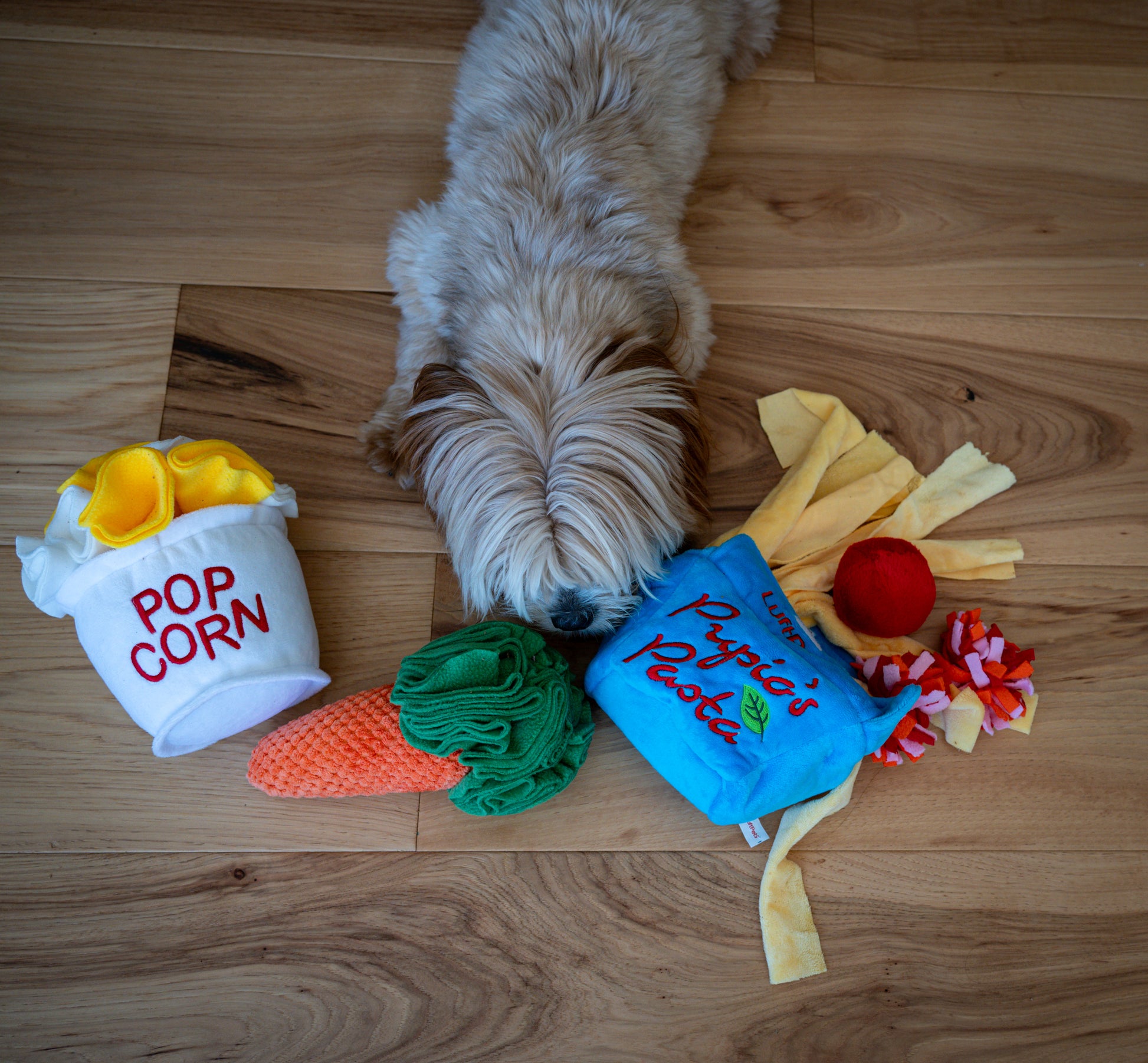 Snuffle Toy Trio – Carrot, Popcorn & Pasta- For Dogs, Cats & Rabbits